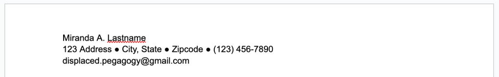 If you’re like me and have a lot that needs to go on a resume then this is a great “hack” and all you have to do is go to “Insert,” “Headers and Footers,” “Headers” and start typing. To insert the black circle like I did you need to go to “Insert,” “Special Characters,” then type “Circle” in the search bar.